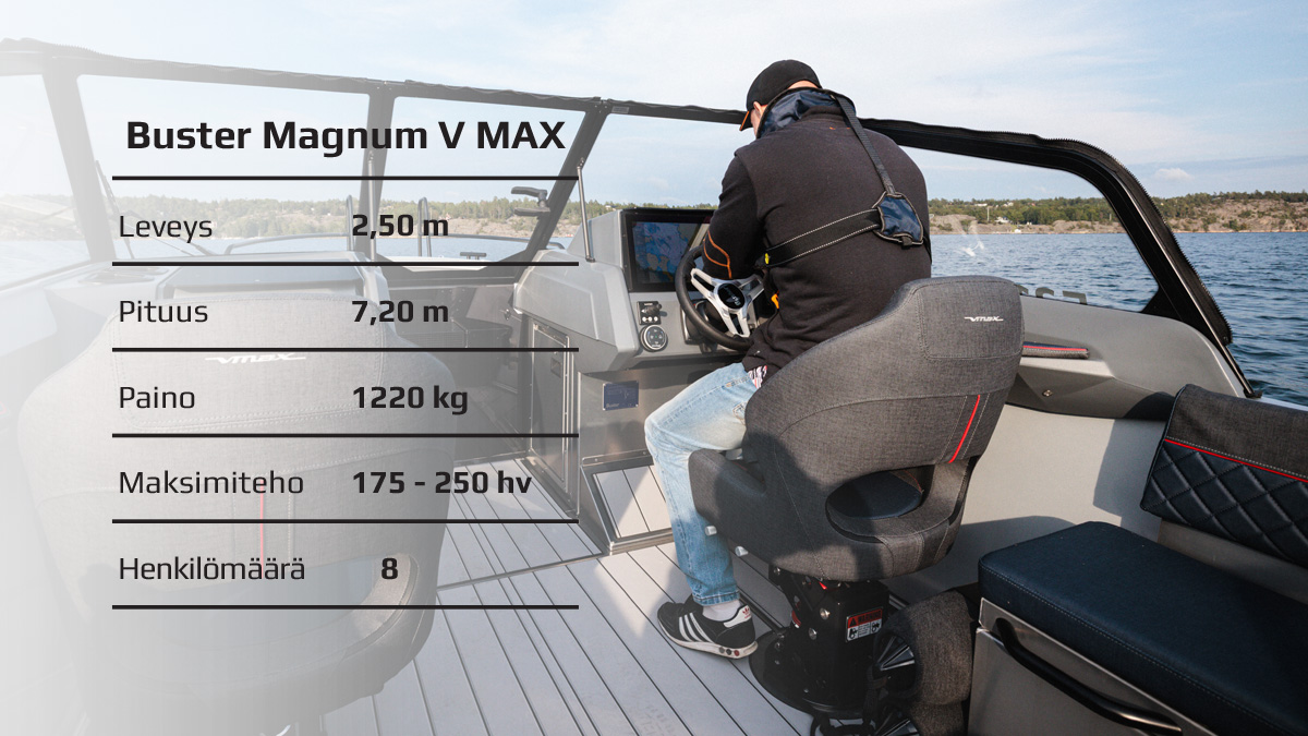 Busterin mallivuoden 2026 uutuus on Magnum V MAX. Pohjoismaiden suosituin suuri avovene on saatavilla jatkossa sporttisena V MAX -versiona. Legendaarinen runko yhdistyy Yamahan 250 hv V MAX SHO -moottoriin, tarjoten lisää kiihtyvyyttä ja huippunopeutta myös raskaalla kuormalla.