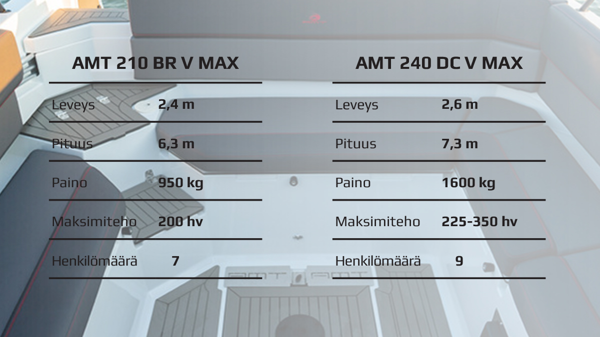 AMT laajentaa mallistoaan sporttisilla V MAX Edition -erikoismalleilla, joissa mustilla kaiteilla ja näyttävillä kylkiteippauksilla ehostettujen venemallien parina on niihin sopivan ripauksen lisäpotkua antava Yamaha V MAX SHO -moottori.