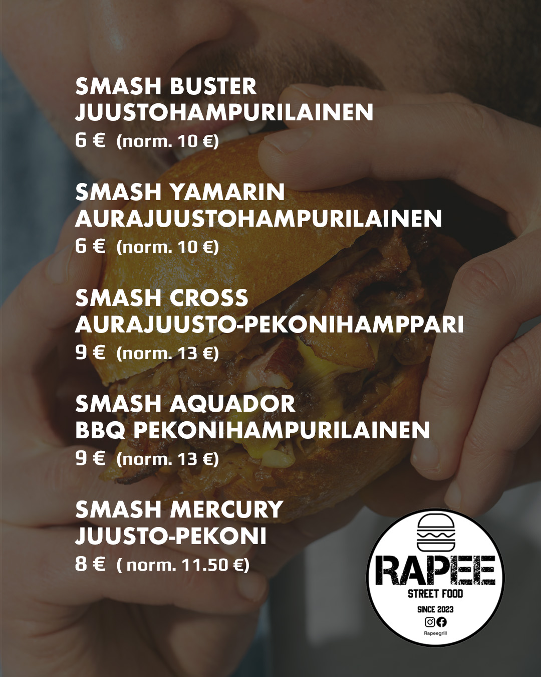 Rapee Grill tunnetaan herkullisista smash burgereistaan ja maukkaasta grilliruoastaan. Maistuisiko esimerkiksi Buster-juustohampurilainen tai Aquador BBQ -pekoniburgeri? Näyttelykävijät pääsevät nauttimaan veneteemaisista burgereista alennettuun hintaan!