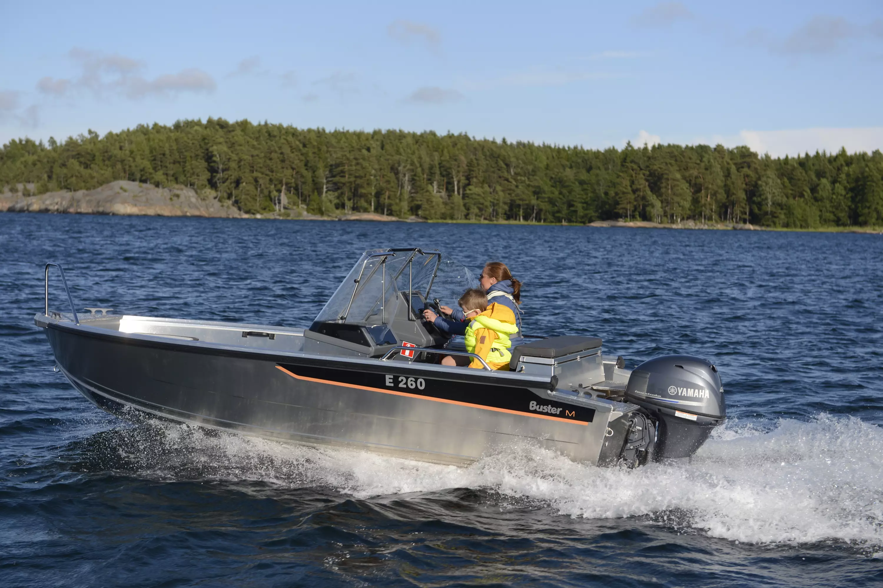 Kaksipulpettinen Buster M2 on parhaimmillaan kesäisillä retkillä, yhteysveneenä sekä kalastuksessa. Buster M2:n vakiovarustukseen kuuluu vapalaatikko, johon mahtuu mukavasti matkatavaraa keulan säilytystilan lisäksi. Buster M -mallin huippunopeus Yamahan 40 hevosvoiman perämoottorilla on 27 solmua, ja Buster M on rekisteröity viidelle henkilölle. Lisävarusteena saatavan välioven ansiosta Buster M:n kyydissä matkustaminen on mukavaa myös sadesäällä. Integroidun kuomutallin alaosaan mahtuu peräkuomu ja päällä olevaan säilytystilaan lepuuttajat sekä kiinnitysköydet.