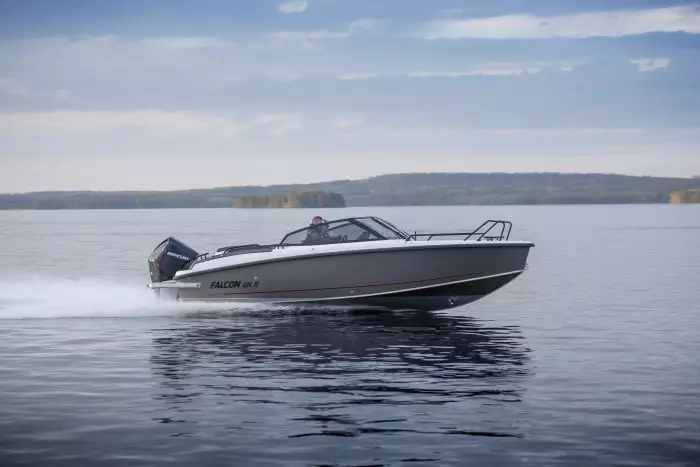 Falcon BR 8 on moderni alumiinivene, jolla mahtuu matkustamaan jopa yhdeksän henkeä. Veneessä on tilava U-sohva, paljon säilytystilaa, ja monipuoliset lisävarustemahdollisuudet.