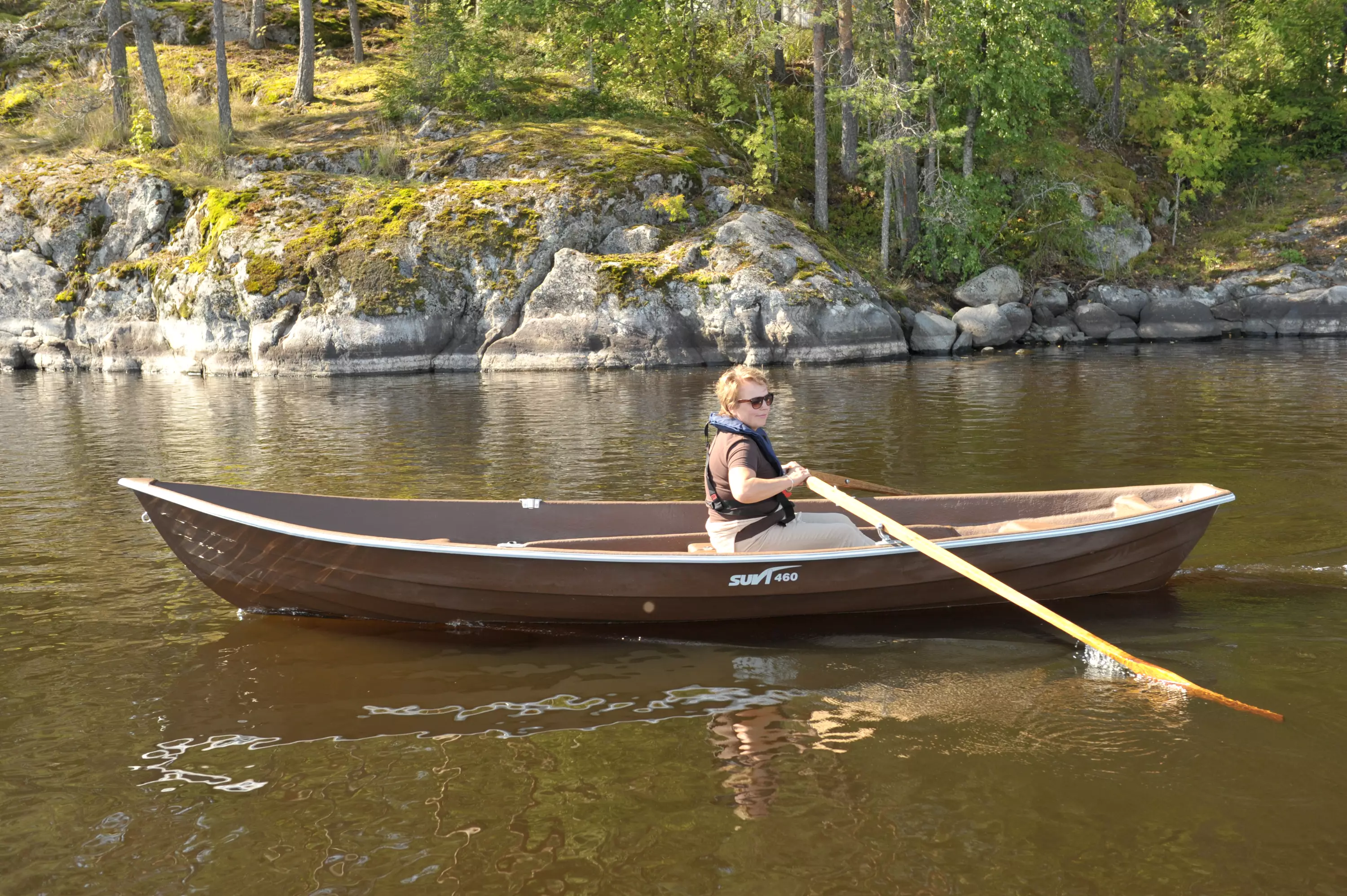 Vanhan puuveneen väriset ”terva”-soutuveneet ovat vaihtoehto vaaleille veneille. Sopivat väritykseltään erinomaisesti suomalaiseen mökkimaisemaan. Veneissä vakiona tervatut/pintakäsitellyt käyrälapaiset airot. Pohjamuotoilun ansiosta Suvi 460 ”terva” toimii myös moottorilla. Soutuominaisuudet ovat säilyneet erinomaisina ja sivuvakavuuskin on parantunut entisestään. Turvallinen, uppoamaton vene mökki- ja kalastuskäyttöön. Vakiovarusteena moottorikaivo ja reunalista. Lukittava säilytystila keski-istuimessa. Lyhytrikiselle moottorille.