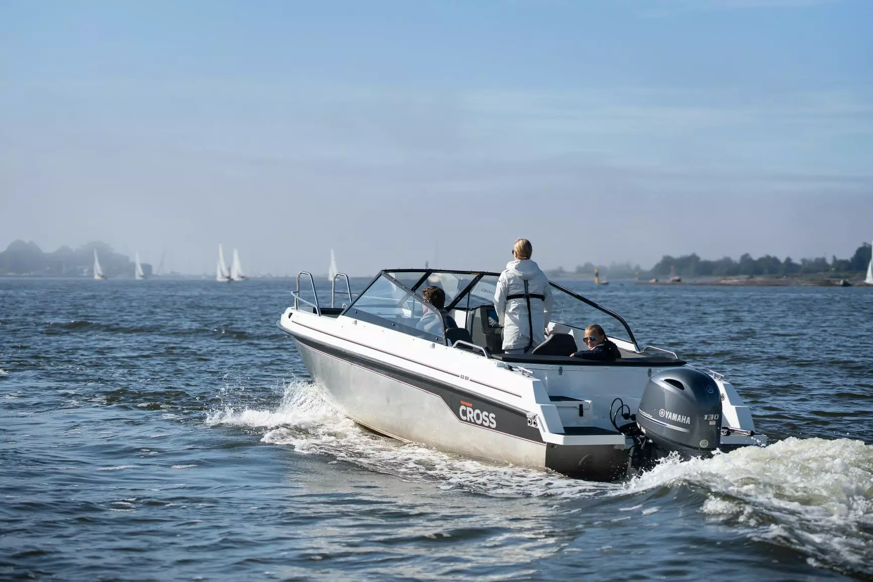 Cross 62 BR on käytännöllinen valinta hieman suuremmallekin porukalle, sillä veneeseen mahtuu mukavasti seitsemän henkeä. Veneen korkeat keulakaiteet helpottavat veneessä liikkumista ja sieltä pois nousua, ja veneen pohjaratkaisu tuo helppoutta veneilyyn. Avotilassa on muhkea U-sohva, joka varmistaa kaikkien matkustajien mukavuuden, ja veneessä on paljon säilytystilaa. Veneen runko on lujatekoista alumiinia ja kansi lasikuitua, jotka varmistaat veneen kestävyyden sekä tyylikkyyden. Cross Q infotainment -järjestelmä kuuluu Cross 62 BR:n vakiovarustukseen. Järjestelmä yhdistää muun muassa merikartat sekä elektronisen navigoinnin yhdelle 10 tuuman näytölle, ja järjestelmän voi nyt myös liittää erilliseen mobiilisovellukseen.